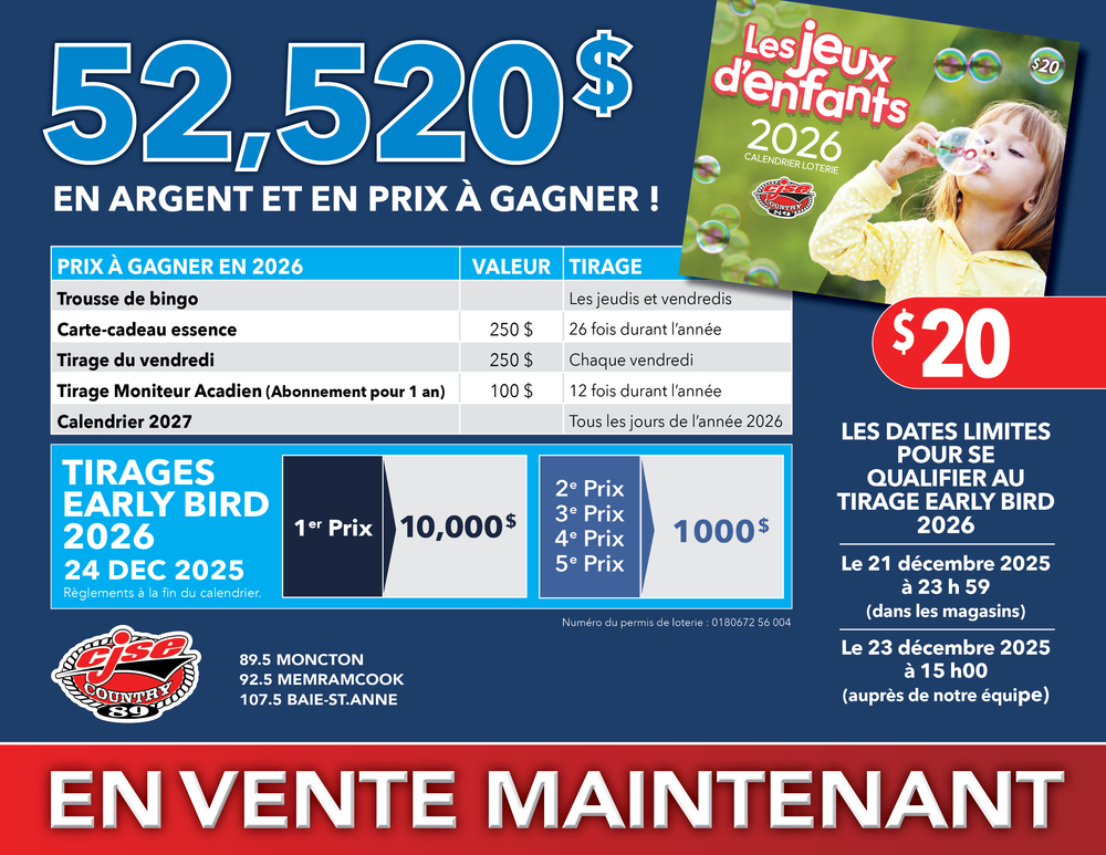 26 septembre 2025 - Edouard Gallant - Shediac Cape - Calendrier 5201 - Gagne Calendrier 2026