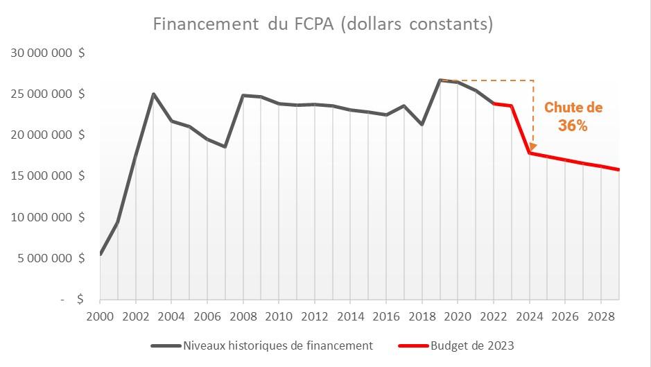 Le nouveau budget fédéral laisse tout un pan du secteur du spectacle pantois, sans plans pour la croissance et la résilience du milieu. Des coupures se font sentir directement dans le financement de bases des organismes, ce qui laisse un goût amer après avoir été soutenu durant la pandémie. Le Fonds du Canada pour la présentation des arts (FCPA) a reçu des fonds supplémentaires en 2019. Fonds pour lequel nous avons été et sommes encore très reconnaissants, car il nous a permis de survivre et de poursuivre la réalisation de nos missions. Cela dit, ces fonds supplémentaires ont non seulement été abolis, mais tout porte à croire que le FCPA va tomber en chute libre après 2024. Cette annonce est d’autant plus difficile à digérer après avoir fait une campagne de sensibilisation durant les derniers mois de l’année 2022 auprès du ministère de Patrimoine canadien.